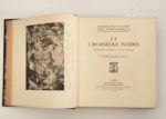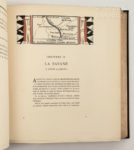[Afrique centrale]. HAARDT (Georges-Marie) ; AUDOUIN-DUBREUIL (Louis). La Croisière Noire, expédition Citroën Centre-Afrique. Paris, Plon, 1927. In-4, [3] f. , VII-243 p., 84 pl. (dont front. et 4 cartes), demi-chagrin marron, dos lisse, auteurs et titre frappés en noir, filet à motif géométrique bordant les plats et le dos, tête noire, couverture conservée ( lég. frott. sur les mors et coins, intérieur frais). Edition illustrée de 80 planches en rotogravure reproduisant des photographies (ethnies, paysages, animaux...) ou des dessins de Iacovleff, 4 cartes dont 3 dépliantes lithographiées en couleur, 57 compositions décoratives aux motifs tribaux noirs et ocres d’après Tcherkassov.