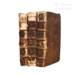 [Afrique]. MARMOL Y CARVAJAL (Luis de) ; PERROT D'ABLANCOURT (Nicolas), trad. L’Afrique de Marmol [...] divisée en trois volumes. A Paris, chez Louis Billaine, 1667. 3 volumes in-4, basane brune mouchetée d'époque, dos à nerfs, tranches mouchetées (reliures usées, défauts intérieurs, cachet, en l’état). Exemplaire fatigué mais comprenant comme il se doit les 28 cartes de Sanson gravées sur cuivre en bon état.