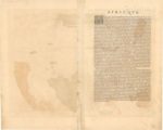 [Afrique]. ORTELIUS (Abraham). Africae Tabula Nova. 1587. 1 carte gravée sur cuivre (55,5 x 44,5 cm.), coloriée (quelques taches). Belle carte de l’Afrique par Abraham Ortelius dans un très beau coloris de l’époque. Basée sur la grande carte murale d’Afrique en 8 feuilles de Giacomo Gastaldi publiée en 1564 et la carte d’Afrique de 1569 de Gerard Mercator, l’Africae Tabula Nova d’Ortelius est la première carte à inclure des informations précises provenant des expéditions européennes dans certaines parties de l’intérieur de l’Afrique. La carte s’étend de la côte du Brésil à la péninsule arabique et est centrée sur l’Afrique. Elle est ornée d’un beau cartouche, de monstres marins, et d’une bataille réunissant trois navires dans l’angle inférieur droit. Elle a été publiée dans l’édition de 1587 du Theatrum Orbis Terrarum d’Abraham Ortelius, dont seulement 250 exemplaires ont été imprimés.
