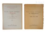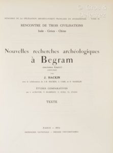 [Archéologie]. [Afghanistan]. HACKIN (Joseph). Nouvelles recherches archéologiques à Begram (ancienne Kapici). 1939-1940. Etudes comparatives par J. Auboyer, V. Elisseeff, O. Kurz, Ph. Stern. I. Texte. II. Planches. Paris, Imprimerie nationale, 1954. 2 vol. in-folio, brochés (couv. insolées). Forme le tome XI des Mémoires de la Délégation archéologique française en Afghanistan. Le volume de planches offre 668 figures. On joint : HACKIN, CARL, MEUNIE. Diverses recherches archéologiques en Afghanistan (1933-1940). Paris, PUF, 1959. Grand in-4, broché (couv. usées). Forme le tome VIII des Mémoires de la Délégation archéologique française en Afghanistan. Illustré de 268 fig. hors-texte