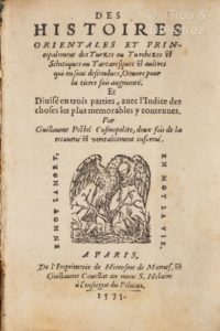 [Proche-Orient]. [Livre du XVIe siècle]. POSTEL (Guillaume). Des histoires orientales et …
