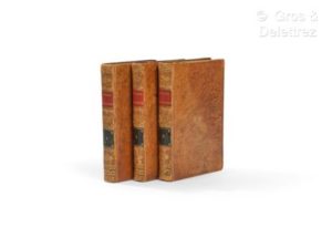 [Turquie]. PERTUSIER (Charles). Promenades pittoresques dans Constantinople et sur les rives du Bosphore. Paris, Nicolle, à la librairie stéréotype, 1815. 3 vol. in-8, veau fauve raciné d’époque, dos lisse orné, pièce de titre rouge et de tomaison verte, encadrement à froid aux plats, tranches marbrées. (coins usés, coupes, coiffes et mors un peu frottés, rousseurs). Première édition. Sans l'atlas, publié séparément deux ans après les volumes de texte. Provenance : Stephan Keyedjian, Paris (ex-libris XXe siècle). (Blackmer, 1292 ; Atabey, 941).