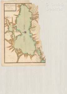 [Mer Noire]. [Manuscrit]. Le Pont Euxin, ou, la Mer Noire. [s.l.], [XVIIIe siècle]. 1 carte manuscrite, env. 48 x 33 cm., lavis d'encre et aquarelle. (une partie vers la bordure droite de la carte manquante). Carte manuscrite centrée sur la mer Noire, illustrant les côtes européennes et asiatiques, en mentionnant la Tartarie (l'Ukraine actuelle), Constantinople, ainsi que de nombreuses îles telles que l’île du Prince et l’île du Pape .