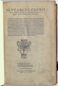 (Auteur de l'antiquité) - PLUTARCHUS.- Graecorum Romanorumque illustrium vitae [...]. Basileae, apud Mich. Isingrinium (ex aedibus Mich. Isingrinii), 1553. In-f° : [24]-392 lvs (light dampstains, some foxing or stains, marginal tear repaired in lf....