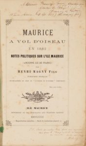[Ile Maurice]. MAGNY (Henri). Maurice à vol d'oiseau en 1882. Notes politiques sur l’Ile …