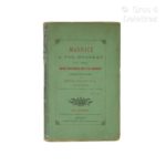 [Ile Maurice]. MAGNY (Henri). Maurice à vol d'oiseau en 1882. Notes politiques sur l’Ile Maurice (ancienne Ile de France). Ile Maurice, Impr. de The Merchants and Planters Gazette, 1882. In-8, XXI-262 p. [2] f. (table, cata. d’éd.), broché (dos découvert renforcé de papier japon, mq. à la couv. inf., qq. rouss. en début de vol.). Provenance : envoi autographe signé de l’auteur à Francisque Sarcey ; l’auteur sollicite également un compte-rendu dans Le Temps .
