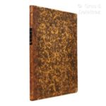 [Indes orientales]. [Livre du XVIe s.]. [LODEWIJCKSZ, Willem]. Premier livre de l’Histoire de la Navigation aux Indes Orientales par les Hollandois A Amsterdam, par Cornille Nicolas, 1598. In-folio, titre, 48 f. (sur 53), demi-basane fauve mouchetée à coin en velin [v. 1900], dos lisse, pièce de titre noire (5 f. en déficite (f. 45-49), manque une partie de f. 26 (env. ¼ de la feuille) titre restauré, réparations dans les marges et coins de feuillets 31, 41, 51-52, atteinte légèrement au gravures). Edition originale de la première partie de cet ouvrage.