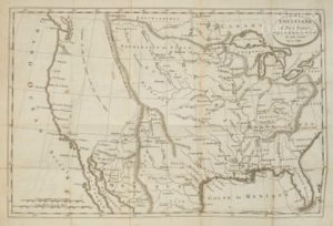 [Americana]. [BAUDRY DES LOZIERES (Louis-Narcisse)]. Voyage à la Louisiane et sur le continent de l'Amérique Septentrionale fait dans les années 1794 à 1798 ; contenant un tableau historique de la Louisiane, des observations sur son climat, ses riches productions, le caractère et le nom des sauvages... Paris, Dentu, An IX - 1802. In-8, VIII-382 p., 1 carte dépliante hors-texte, cartonnage récent marbré à la Bradel, pièce de titre fauve (rouss. modérées, auréole pâle en toute fin de vol., rousseurs sur la carte et des fentes sans manque dont une réparée au verso). Edition originale, illustrée de la carte dépliante de la Louisiane dressée par L. Collin. Elle comporte une traduction libre des deux vocabulaires des indiens, la langue des Naoudoouessis et des Chipouais.