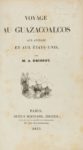 [Americana]. BRISSOT DE WARVILLE (Anacharsis). Voyage au Guazacoalcos, aux Antilles et aux Etats-Unis. Paris, A. Bertrand, 1837. In-8, [2] f., IV-390 p., pl., demi-chagrin vert bronze d’époque, dos à 4 nerfs, titre et auteur dorés, fleuron doré au centre des caissons (coins et coupes frottés, coiffe de tête manquante, rousseurs, petits défauts marginaux). Ouvrage illustré de 2 planches et d’une carte dépliante de Tehuantepec et ses environs.