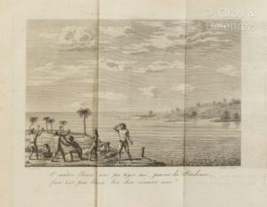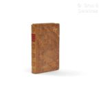 [Americana]. DORVO-SOULASTRE. Voyage par terre de Santo-Domingo, capitale de la partie espagnole de saint-Domingue, au Cap-Français, capitale de la partie française de la même isle, entrepris et exécuté au mois de germinal an VI, par les ordres du général de division Hédouville... suivi d'un rapport sur l'état actuel des mines de la colonie espagnole traduit de don Juan Nieto,... et terminé par une relation sous le titre de : Mon retour en France. Paris, Chaumerot,1809. In-8, [3] f. (dont fontis. dépl.), 407 p., errata, basane fauve racinée d’époque, dos lisse orné, piece de titre maroquin rouge, tranches jaune jaspées rouge (coiffe de tête décuverte, travaux de vers aux plats, rousseurs sporadiques). Edition originale ornée d’un frontispice dépliant gravé sur cuivre par Bovinet. (Sabin 20661).
