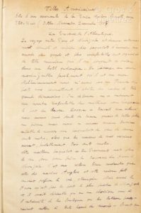 [Manuscrit]. [Americana]. GASNIER (René). Villes Américaines. France et Etats-unis. Manuscrit autographe signé, [1907]. In-folio (20,4 x 31,5 cm.), encre bleue sur papier, 100 p., [1] f. (table), demi-maroquin bleu nuit à coin, dos lisse, titre et décor dorés, doubles filets dorés sur les plats [A. Lasneret, Angers] (coins et mors légèrement frottés). Important manuscrit autographe, d’une écriture très lisible, avec corrections, rédigé par René Gasnier (1874-1913) lors d’un voyage aux Etats-Unis. Ces notes, probablement les premières versions de son récit, aboutiront à la publication de Villes Américaines en 1909 à Angers. René Gasnier, pionnier de l’aérostation et de l’aviation angevin, représenta la France lors de la prestigieuse Coupe Gordon Bennett en 1907. Le manuscrit débute par une description de la traversée vers les Etats-Unis, ponctuée de réflexions sur la modernisation des ports français et les progrès techniques comme la télégraphie sans fil. Il arrive à New York, décrivant l’effervescence d’une nation jeune et moderne, ses infrastructures, son éclairage électrique et ses transports. Le récit se poursuit avec une visite de Broadway, du New-York Herald, et une immersion dans les marchés financiers en pleine crise de 1907. Gasnier raconte ensuite son voyage à Saint-Louis pour participer à la Coupe Bennett, où il décrit avec précision le trajet, les gares, et les trains. Après le départ de son ballon l’Anjou, il survole le Missouri et l’Ohio, traversant des paysages variés et vibrant au rythme de la modernité américaine. Il atterrit en Virginie après 38 heures de vol, terminant 7? de la course. Le récit se poursuit par un périple touristique structuré par les villes visitées : Niagara et ses chutes spectaculaires, Buffalo, Chicago avec ses célèbres abattoirs et voies ferrées, puis Pittsburgh et les usines Carnegie. Il s’émerveille des grandes réalisations industrielles et architecturales, tout en notant les contrastes sociaux et environnementaux. A Boston, il retrace l’histoire révolutionnaire de la ville et visite Harvard, avant de partir pour le Canada. Québec et Montréal lui inspirent des réflexions sur les oppositions de langues et de cultures. De retour aux Etats-Unis, il explore Philadelphie et Washington, appréciant le calme et l’élégance de cette dernière. Son récit s’achève par des comparaisons entre les industries et mentalités américaines et françaises, concluant sur une admiration pour l’énergie et l’innovation de ce pays en pleine transformation.