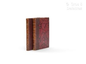 [Americana]. GRANIER DE CASSAGNAC (Bernard Adolphe). Voyage aux Antilles Françaises, Anglaises, Danoises, Espagnoles; à Saint Domingue et aux Etats-Unis d'Amérique. Paris, Dauvin et Fontaine, 1842, puis Comptoir des Imprimeurs-Réunis, 1844. 2 vol. in 8, [2] f., VIII-356 p., [2] f. (table et f. bl.) + [2] f., 481 p., [2] f. (table et f. bl.), demi chagrin bordeaux de l’époque, dos à 5 nerfs, titre et tomaison dorés, filet doré, armes en queue des dos (dos un peu frottés, rousseurs, petits défauts dans les marges). Provenance: Bruneaud, officier de Vaisseau (étiq. ex-libris moderne) ; armes non identifiées en queue des dos.