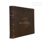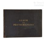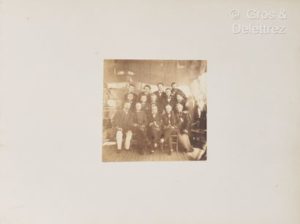 [[Photographie]. [Americana]. [LAURENT, Charles (possesseur ?)]. Album de photographies. [v. 1860?]. In-folio oblong (23 x 31 cm.), [43] f., percaline brune de XIXe s., dos à quatre nerfs, mention Charles Laurent frappé au dos, titre doré au centre du plat sup., tranches rouges (reliure frottée, qq. feuillet déreliés ou des images découpées, des tirages passés). Ensemble d’environ 70 épreuves albuminées de différents formats petit et moyen contrecollées sur feuillets de carton, prises vers 1860. L’on y trouve représentées des églises de style sud-américain, des vues d’édifices et de scènes rurales ; de nombreux portraits de marins à bords de voiliers, scènes de baignades dans la jungle ou dans les cascades. Deux tirages (insolés) montrent des icebergs. En fin de volume, sept cyanotypes illustrent un voyage plus tardif en Asie du Sud-Est.