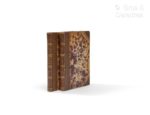 [Americana]. MORELET (Arthur). Voyage dans l'Amérique Centrale, l'ile de Cuba et le Yucatan Paris, Gide et J. Baudry, 1857. 2 vol. in-8, [2] f., 337 p., [1] f. + [2] f., 323 p., [1] f., 3 pl. dont carte dépl., demi-chagrin fauve à coins d’époque, dos à 4 nerfs, auteur, titre et tomaison dorés, tranches mouchetées (reliure un peu frottée, petite fente sur la carte réparée à l’adhésif au dos). L’illustration se compose de 22 vignettes gravées sur bois en tête de chaque chapitre dont quelques-unes d'après les dessins de l’auteur, une carte dépliante gravée sur acier illustrant le Yucatan et le Guatemala, ainsi que deux planches de musique. Provenance: Carlos E. Benemann (cachet sur une garde) ; ancienne étiquette annulér de la bibliothèque de Department of States, United States of America . (Sabin 50591).