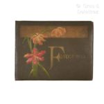 [Argentine]. [Photographie]. [Excursion photographique dans les provinces de Tucuman, Sata et Mendoza]. [s.l.], [ca.1909-1910?]. Album in-4 oblong, 49 épreuves citrates, environ 24x18 cm, tirées par contact avec marges, légendées en espagnol percaline verte, dos lisse, décor floral au plat sup. (mouillure en pied ne touchant que le support ; déchirure sans manque sur la dernière photo). L'album illustre les étapes de la construction de la ligne ferroviaire la plus haute du monde, en documentant des lieux clés comme le Paso de Uspallata, Tucumán, et le Puente del Inca. Il met en avant des scènes de la vie quotidienne, la production de sucre, des interactions avec les peuples indigènes (Matacos et Chiriguanos), et les progrès techniques, notamment le chemin de fer Transandin et ses infrastructures.