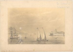 [Brésil]. [Dessin]. ROMIEUX (Osmond). [Entrée de Rio Janeiro. Fort Villegagnon (titre manuscrit …