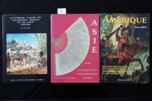 BROC (Numa) – Dictionnaire illustré des Explorateurs et grands Voyageurs français du XIXe siècle. I- Afrique, II- Asie, III- Amérique. Paris, Éd. du CTHS 1988, 92 1999, 3 vols. in-4° (22 x 31 cm) de xxxi-346 + xxvi-452 + xxv-364 pp. avec illustrations et cartes hors-texte. Rel. éditeur sous jaquettes illustrées. Des index géographiques et thématiques permettent un accès facile aux quelques 1.000 notices. État quasi neuf.