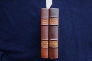 FRÈRE (Édouard) – Manuel du Bibliographe Normand ou Dictionnaire bibliographique et historique contenant : L'indication des Ouvrages relatifs à la Normandie, depuis l'origine de l'Imprimerie jusqu'à nos jours. Des notes biographiques, critiques et littéraires sur les écrivains normands, sur les auteurs de publications se rattachant à la Normandie et sur diverses notabilités de cette province. Des recherches sur l'histoire de l'Imprimerie en Normandie. Rouen, A. Le Brument 1858-60. 2 vols. in-8° (17 x 25 cm) de 3f.-xiii-1- 492 pp. + 3f.- 632 pp. imprimées sur 2 colonnes. Reliures postérieures demi-chagrin marron, dos à nerfs, couvertures imp. conservées. Bons exemplaires, toujours recherchés des bibliophiles normands.