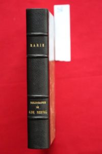 [Gérard de NERVAL] - MARIE (Aristide) – Bibliographie des œuvres de Gérard de NERVAL avec un précis sur l'histoire de ses livres. Paris, Librairie Ancienne Honoré Champion 1926, in-8° (15 x 22,5 cm) de lxiv-281 pp. avec 37 fac-similés de titres et couvertures de manuscrits et éditions originales. Index. Tirage limité à 1225 ex., celui-ci num. sur vélin pur fil Lafuma de Voiron. Relié demi-chagrin noir à coins, dos à nerfs, tête dorée, couvertures conservées (Rel. signée ‘Trinckvel’). Bel exemplaire.