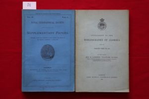 PLAYFAIR (Sir Robert Lambert) – A Bibliography of Algeria, from expedition of Charles V in 1541 to 1887. London, John Murray 1888, in-8° (16,5 x 25 cm) broché 129-430 pp., complété par : PLAYFAIR (Sir Robert Lambert) – Supplement to the Bibliography of Algeria from the earliest times to 1895. London, John Murray 1898, in-8° (16,5 x 25 cm) br. de iv-321 pp.. Excellente bibliographie algérienne contenant 7763 notices. Réf. : G. Sangnier - Bibliothèque algérienne n° 267.