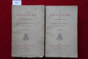 PORTALIS (Roger) BÉRALDI (Henri) – Les Graveurs du dix-huitième siècle. T. I II (de ADAM à MARAIS). Paris, Damascène Morgand et Charles Fatout, 1880-1881. 2 forts vols. in-8° (14 x 23 cm) de xii-759 +771 pp., brochés, couv. imprimées, non rognés. Édition originale. Tirage limité à 570 ex., un des 50 exemplaires num. sur Whatman (après 20 ex. sur Chine). L'ouvrage de référence pour les graveurs du XVIIIe siècle. Classement alphabétique par artiste, avec pour chacun une notice biographique, des éléments critiques, une chronologie des œuvres, etc.