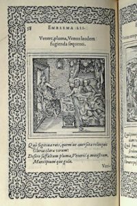 (Emblemata) - JUNIUS, Hadrianus.- Emblemata, ad D. Arnoldum Cobelium. Eiusdem aenigmatum libellus, ad D. Arnoldum Rosenbergum. Antverpiae, ex officina Christophori Plantini, 1565 (idibus Maii). In-8° : 149-[3]-[15] pp. (p. 7 lacking and replaced by...