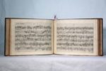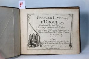 BOYVIN (Jacques) – Premier Livre d’Orgue, Contenant les huit tons, à l’usage ordinaire de l’Église. Composé par J. Boyvin organiste de l’Église Cathédrale Notre Dame de Rouen. Paris, de Baussend Le Maire, et Rouen, chez l’Auteur 1690, in-4° de 3ff.- 110 pp. de musique entièrement gravées. Édition originale. Suivi de : BOYVIN (Jacques) – Second Livre d’Orgue, Contenant les huit tons, à l’usage ordinaire de l’Église. Composé par J. Boyvin organiste de l’Église Cathédrale Notre Dame de Roüen. Paris, Christophe Ballard, ‘seul imprimeur du Roy pour la Musique’ 1700, in-4° de 2ff.- 16 pp.- et 101 pp. de musique entièrement gravées (de Baussen sculpsit). Édition originale. Tous deux réunis en un volume in-4° oblong à l’italienne (29,5 x 22 cm), reliure d’époque plein veau, dos à nerfs décoré de caissons très ornés de rinceaux et fleurons, tranches mouchetées. Bon exemplaire. Réunion rare de deux éditions originales d’importance. « Jacques BOYVIN, organiste de l'église cathédrale de Rouen, obtint cette position en 1674 et conservera sa place pendant trente-deux ans. Il publie un premier livre de musique d'orgue en 1690, suivi de sa réimpression et de son supplément en 1700, comprenant au total 120 pièces groupées en 16 suites. Le second recueil est précédé d'un Traité abrégé de l'Accompagnement pour l'orgue et pour le clavecin, où les règles principales de l'accompagnement de la basse chiffrée sont présentées avec assez de clarté, d'après l'ancienne méthode italienne. Ses explications concernant la registration sont une source essentielle en ce qui concerne l'exécution de la musique d'orgue en France à l'époque de Louis XIV ». (d’ap. Fétis, Bibl. Gén. Mus. II-51 Lyrebird).