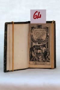 [HEINSIUS (Daniel)] — Laus Asini tertia parte auctior : cum alijs festivis opusculis, quorum seriem pagella sequens indicat. Lugd. Batavorum [Leide], ex officina Elzeviriana, 1629. Vol. in-24 (10,4 x 6,4 cm) de 10 ff. dont titre gravé - 438 pp., [Signatures : *6, **4, A-Nn6, Oo4]. Reliure postérieure (XIXe) demi-veau vert bronze, dos lisse orné de 7 rangs de quadruples filets or en place de nerfs, pièce de titre rouge, tranches cirées. Bon exemplaire. L’originale de ‘Éloge des Ânes’, facétie attribuée à l'érudit classique et poète néolatin hollandais Daniel Heinsius (1581-1655) parut chez Elzevier en 1623. Cette seconde édition, très augmentée, est illustrée d’un titre gravé montrant deux personnages qui peuvent représenter Ewaldus SCHREVELIUS, dédicataire de l’ouvrage, et Adolph VORSTIUS, tous deux médecins et amis de l’auteur, se découvrant humblement devant un âne monté sur un piédestal. Elle contient 6 pièces en plus du ‘Laus Asini’ dont le très facétieux ‘Laus Pediculi ad conscriptos Mendicorum Patres’ et se termine par une lettre à H. Grotius suivi d’un poème à l’adresse de son ami Baudius, le poète néo-latin Dominique Baudier, pour le décès de sa femme. Réf. : Berghman 1247, Brunet III-84, Mennessier de La Lance I-613, Oberlé 383, Rahir 286. Cet éloge funèbre est une satire sur l'ignorance et la servitude volontaire de l'âne dans un esprit érasmien qui n’a rien perdu de son actualité. Heinsius défend avec érudition, véritable feu d'artifice d'allusions savantes, les hommes de lettres et ceux qui aiment apprendre, du mépris des ignorants.