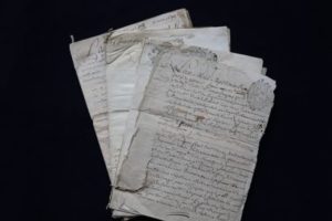 LA ROCHELLE (fin XVIIe siècle) – Cahier mixte, parchemin et papier, de 18 feuillets au format 19 x 26 cm, réunissant 6 actes passés à La Rochelle. 1* - Le 17 mars 1694, Antoine Joulin, sieur de la Fuye et Suzanne Garlin, sa femme, vendent leur maison et dépendance à Pierre Baron et Marguerite Noël du Rocher. (Parchemin de deux bi-feuillets) 2* - Le 27 mars 1694, François Huet et Marianne Toraille, sa femme, transportent à Antoine Joulin, sieur de la Fuye, et Suzanne Garlin sa femme, une maison dans la rue de Gargoulleau, paroisse Saint-Barthelemy. (Parchemin de deux bi-feuillets) 3* - Le 19 février 1698, François Huet, sieur de la Gastinière et son épouse Marianne Toraille cèdent à Louis Alart, 200 livres de rente à eux due par Pierre Baron et Marguerite Noël du Rocher. (Idem, deux bi-feuillets) 4* - Le 23 janvier 1718, Pierre Alart et Louise David son épouse cèdent à Vincent Bouzitat, sieur Deselines, 200 livres de rentes foncières héritées de ses parents Louis Alart et Marie Robert selon le contrat passé le 20 janvier. (Parchemin de deux bi-feuillets, scellé du sceau de La Rochelle) 5* - Le 7 février 1718, à la requête de M. Bouzittat, sieur Desellines a été signifié et copie baillée à Jacques Faget, conseiller du Roy, et Margueritte Noël du Rocher son épouse (veuve de Pierre Baron) du contrat de cession et transport fait par le sieur Pierre Alart et sa femme audit sieur Desellines de 200 livres de rente, le 23 janvier. Il leur est fait défense de payer à l’avenir ladite rente de 200 livres à autre qu’au sieur Desellines. 6* - Le 20 février 1719, à la requête de Pierre Alart, le notaire signifie à J. Faget et sa femme de payer à M. Vincent Bouzitat, sieur Deselines, 5 ans d’arrérage de la rente de 200 livres instituée par contrat du 17 mars 1694 transportée le 27 mars 1694 et 19 février 1698 et échue en partage le 20 janvier 1718. Ledit avis a été « délaissé au domicile desdits Faget et sa femme parlant à leur servante avec injonction requise ».