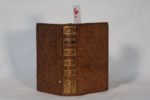 ARNAULD (Ant.) LANCELOT (Claude) – Grammaire Générale et Raisonnée. Contenant les fondements de l'art de parler, expliqués d'une manière claire naturelle. Les raisons de ce qui est commun à toutes les Langues, des principales différences qui s'y rencontrent ; Et plusieurs remarques nouvelles sur la Langue Françoise. Suivi de : FROMANT (Abbé Charles-Paul) – Réflexions sur les fondemens de l’Art de Parler, pour servir d'éclaircissemens et de Supplément à la Grammaire générale et raisonnée. (sic) Paris, Bailly Prault 1769. Deux parties réunies en un vol. in-12 (10,5 x 16,8 cm) de 6ff.- 244 pp.- 2ff. (Privilège) + 414 pp. (avec erreur de pagination dans la préface xvj-25). Reliure d’époque plein veau cognac, dos à nerfs et caissons fleuronnés, pièce de titre de maroquin vieux rouge, filet or sur coupes, tranches peintes. Bel exemplaire. Ex-libris armorié ‘Bibliothèque de Mr de Moncuit de Boiscuillé’.