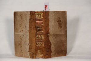 [ÉTAMPES Louis-Dominique (Marquis d’)] – Almanach royal, année commune 1789. Paris, Vve d’Houry et Deburre (1788), in-8° de 714 pp., demi-reliure d’époque, dos à nerfs et caissons fleurdelysés, pièce de titre rouge, plats avec trace du supra-libris doré ‘marquis d’Estampes’, tranches peintes en rouge. (Usures, manque en queue et frottements). Émouvant exemplaire ayant appartenu au Marquis Louis-Dominique d’Estampes (1734-1815) et amplement annoté de sa main, tant sur les pages de garde que dans les marges du volume : après la liste des membres de sa famille avec leurs dates de naissance, suit celle des Ministres en place depuis 1738 et les ‘Pezés au moulin de Cany le 27 Juillet 1788’ qui donne le poids des proches et amis, ‘le tout au poids de la Vicomté’. Sur les deux pages suivantes, le Marquis d’Estampes relate le voyage que lui et sa famille entreprennent le 9 Juillet 1789 pour se rendre au château de Mauny, fief de la famille, et fuir les évènements parisiens. Dans ce récit, les noms de ceux qui les ont reçus (Marquis d’Heudeville, Duc de Bouillon, Mr Portier…) et les informations sur ce qui se passe dans Paris où son fils est mobilisé au Champs de Mars auprès du Comte de Narbonne. Dans les marges, notes variées et en particulier celle-ci figurant en marge du calendrier de la première quinzaine de juillet : « les 10 jours à jamais mémorables dans notre histoire par la Révolution qui est dans Paris », notes sur Necker et St Priest. Les 7 pages de garde de la fin du volume sont truffées de notes : sur Houdart de La Mothe, la consommation journalière de farine et de viande dans Paris, et une page entière consacrée à la banqueroute de Pinet. Les exemplaires de cette provenance sont rares.