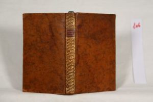 [LA FOLIE (Louis-Guillaume de)] – Le philosophe sans prétention ou l'homme rare. Ouvrage physique, chymique, politique et moral, dédié aux Savans. (sic) Par M.D.L.F. Paris, Chez Clousier, Imprimeur-Libraire, rue Saint-Jacques, 1775. In-8° (13 x 20,2 cm) de 2ff.- 349 pp. avec une vignette de titre et une à mi-page gravées par C. Boissel. Le front. manque. Reliure d’époque plein veau havane clair, dos lisse orné d’un décor floral à répétition sur l’ensemble, pièce de titre rouge, roulette sur coupes. (Traces de mouillures anciennes en tête). Édition originale de cette célèbre utopie scientifique, sorte de fiction astronautique qui décrit l'arrivée sur terre d'un habitant de Mercure dans une machine volante électrique, dont la description est considérée comme la première anticipation de la dynamo. Curieux et peu commun. Ex-libris A. Jouffray ‘À l’aventure’, représentant les deux faces d’une médaille. Réf. : Brockett 4686, Brug 102, Caillet 5962, Cioranescu 35673, Duhem 128, Hartig 64, Roller-Goodman II-64, Wellcome III- 430. Louis-Guillaume de La Folie (1717-1780), chimiste rouennais, inspecteur des manufactures royales, membre de l'académie de Rouen. Véritable roman d'anticipation scientifique avec descriptions de découvertes et d'appareils futuristes, son ouvrage s'inscrit dans la littérature utopique du XVIIIe. La Folie fait figure de précurseur dans ce domaine.