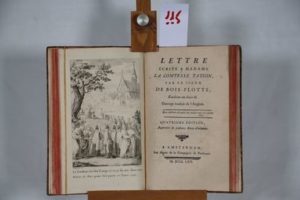 [MARÉCHAL (Nicolas), alias marquis de BIÈVRE] — Vercingentorixe, tragédie, œuvre posthume du sieur de Bois-Flotté, étudiant en Droit-Fil : suivie de notes historiques de l’auteur. Sans lieu, ni nom 1770, in-8° de 56 pp. et un frontispice gravé qui représente une tablée et ses convives écroulés après s’être battus, avec cette légende : « Je vais me retirer dans ma Tente, ou ma Nièce / Et… j’attendrai la mort de la faim, de la pièce ». Avec une ‘Lettre de Madame la Comtesse Tation, à l’éditeur…’ Édition originale. « Le premier calembourdier (ou calembouriste) peut entrer en scène, c’est Nicolas Maréchal, ‘prince du calembour’ autoproclamé marquis de Bièvre (1747-1789), mousquetaire et fin diseur, petit-fils du premier chirurgien de Louis XIV. Il publia en 1770 une Lettre écrite à Madame la Comtesse Tation par le Sieur de Bois-Flotté, étudiant en droit fil que suivirent bientôt Notes historiques sur l’abbé Quille, Les amours de l’Ange-Lure et de la Fée-Lure puis une pièce de théâtre en un acte intitulée Vercingentorixe, farcie de calembours qui n’ont rien à voir avec l’action et qui la parasitent irrespectueusement. Elle contient ces vers immortels : ‘Je sus comme un cochon résister à leurs armes, / Et je pus comme un bouc dissiper vos alarmes’ » in : ‘Le Calembour’ de J.-B. Evette. Il est l'auteur de l'article Kalembour de l’Encyclopédie. Réf. : Quérard ‘Supercheries’ I-135. Relié avec : [MARÉCHAL (Nicolas), alias marquis de BIÈVRE] – Lettre écrite à Madame la Comtesse Tation, par le Sieur de Bois-Flotté, étudiant en droit-fil. Ouvrage traduit de l'Anglois. Quatrième édition, Augmentée de plusieurs Notes d'infamie. Amsterdam, Aux dépens de la Cie des Perdreaux 1770, in-8° de xvi-26pp.- 1f d'errata et une gravure frontispice de Dienkerpergh et d’un joli en-tête à mi-page servant d'introduction à ce recueil de calembours. Réf. : Barbier II-1195c, Gay-Lemonnier II-805. Relié avec : [VIEUVILLE DE SAINT-CHAMOND (Charles Louis Auguste de La)] – Ah ! Que c’est bête ! Par M. TIMBRÉ. Quand Jean-Bête est mort, il a laissé bien des Héritiers. À Berne, De l’imprimerie des Frères Calembourdiers à la Barbe-bleue 10007006016 [1776], in-8° de 61 pp., sans frontispice. Édition originale de ce recueil en prose entremêlé de calembours. Réf. : Gay-Lemonnyer I-37, Quérard ‘Supercheries’ III-833d. « Il en est de ce titre comme du nom du prince Tarare, qu'on ne pouvait entendre sans en devenir l'écho. Jamais titre ne fut plus scrupuleusement rempli. C'est une polissonnerie dans le goût de la brochure de M. le marquis de Bièvre sur l'histoire de la Comtesse-Tation ». Relié avec : [RAGOT DE GRANDVAL (Charles François)] – Les deux Biscuits, tragédie. Traduite de la Langue que l’on parloit jadis au Royaume d’Astracan. Et mise depuis peu en Vers François. Se vend à Astracan [Paris], Chez un Libraire 1759, in-8° de 31 pp.. Brochure récréative, où l'auteur ne dément pas sa verve spirituellement piquante et gaie. Réf. : Barbier I-919b ‘Les initiales des noms des personnages dans l’ordre où ils se trouvent au v° du titre forment le nom de Grandval…’, Weller I-129 pour l’attribution du lieu d’édition. Ensemble relié à l’époque en un volume in-8° (12,5 x 19,5 cm) demi-basane blonde, dos lisse orné de filets or et fleurons. Petit accroc en tête, la pièce de titre censurée.
