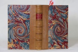 DAUDET (Alphonse) – Trente ans de Paris à travers ma vie et mes livres. Paris, Marpon et Flammarion, coll. Artistique Guillaume, 1888. In-12 (12 x 18 cm) de [8]-344-[4] pp.. Reliure d’époque demi-basane glacée blonde, dos à nerfs surlignés de filets or orné de fleurons, pièce de titre de chagrin rouge, tranches mouchetées, couverture illustrée conservée. Illustrations in-texte par Bieler, Montégut, Myrbach, Picard et Rossi. Édition originale. Agréable exemplaire. « Alphonse Daudet raconte son arrivée à Paris en 1857, ses retrouvailles avec son frère Ernest, sa vie de bohême, sa rencontre avec le directeur du Figaro, Villemessant, le début de son succès littéraire, ses rencontres avec Hugo, Flaubert, Sand, Tourgueniev, les cafés littéraires... ». Réf. : Vicaire III-59.