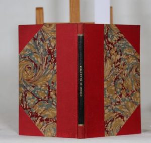 GAUTIER (Théophile) – Poésies... qui ne figureront pas dans ses œuvres, précédées d’une autobiographie et ornées d’un portrait singulier. France, Imprimerie particulière 1873 [Bruxelles, Poulet-Malassis], in-8° (11,5 x 19 cm) de 2 ff.- ii-64 pp., bien complet et tirés sur chine du portrait caricatural de Théophile Gautier en frontispice et de la double planche de musique. Édition originale, tirée à 150 exemplaires sur vergé Hollande. Reliure à la Bradel légèrement postérieure demi-percaline rouge à coins, dos lisse, pièce de titre de chagrin noir, doubles filets dorés en tête et en queue. Couvertures imprimées conservées, bel exemplaire, non rogné. Le petit fleuron de la couverture et de la page de titre, qui représente une tête de faune barbu, a été dessiné par Félicien ROPS. Réf. : Clouzot 73, Pia 1151, Vicaire III-939.