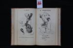LES ARTS INCOHÉRENTS – 1884 – Catalogue illustré de l'exposition des Arts incohérents. Suivi de : Souvenir rétrospectif des expositions 1882-1883. Paris, Bernard Cie 1884, in-8° (21,5 x 14 cm) de 6 ff.n.ch.- 163 pp. et 2 planches hors texte sur papier rose glacé + XVI pp. (Souvenir) ; nombreuses illustrations in-texte et à pleine page. Reliure à la Bradel plein papier reliure, pièce de titre noire. « Les Arts incohérents sont les enfants naturels de la fin du XIXe siècle. Époque insolente et inventive qui marque un tournant dans les domaines de l'art. Les Salons de l'art officiel se voient remis en cause jusque dans les colonnes des journaux par le trait railleur des illustrateurs stigmatisant un monde en voie de disparition. C'est dans cette atmosphère mouvante qu'un certain Jules Lévy, ex-membre du club des Hydropathes, décide d'organiser "une exposition de dessins exécutés par des gens qui ne savent pas dessiner". Une kermesse de charité en faveur des sinistrés d'une explosion de gaz lui donnera la première occasion de présenter les œuvres collectées. Le 13 juillet 1882 aux Champs Élysées, la baraque des "arts incohérents" accueille de nombreux curieux… Le but est charitable comme pour toutes les expositions incohérentes qui suivront. Un règlement en 13 points annonce que "Toutes les œuvres sont admises, les œuvres sérieuses et obscènes exceptées". L'exposition se dote d'un vrai catalogue (mais avec des notices d'artistes farfelues), d'affiches et de cartons d'invitation sur lesquels Luigi Loir érige la cocotte en papier en Arc de triomphe de l'avenir et Lévy d'Orville renverse un encrier sur un traité d'esthétique. Le ton est donné. Les parodies abondent, les jeux de mots picturaux également. Le sourire est au rendez-vous, la foule aussi. Plus de 20.000 visiteurs feront le déplacement en un mois » (d’ap. Daniel Grojnowski). Réf. : Vicaire I-132. Catherine Charpin ‘Les Arts Incohérents (1882-1893)’ avec la préface de François Caradec (1990). Et la remarquable synthèse de Daniel Grojnowski.