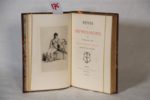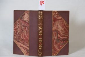 NÔ (Charles) – Rêves et Impressions. Préface par Henry FOUQUIER. Eaux-fortes de Ricardo de LOS RIOS. Paris, Librairie des Bibliophiles 1891, petit in-8° (14 x 21 cm) de 2ff.- xxv- 165 pp.- 1f. illustré de 9 eaux-fortes de Ricardo de Los-Rios. Édition originale tirée à 300 ex., tous sur Hollande. Reliure du temps demi-chagrin mauve à coins, dos lisse orné d’un joli motif floral mosaïqué avec guirlande en tête et en queue, filets or en bordure des plats, tête dorée, couvertures conservées. Charmant exemplaire dans une agréable reliure signée ‘Albinhac’. Le préfacier, Henry Jacques Fouquier marseillais de Paris, se lance dans le journalisme. Doué d'une extraordinaire fécondité, il joint à une réelle érudition une fine ironie d’un style élégant et souple. « Sisyphe du journalisme, martyr du labeur quotidien... », il est l’un des fondateurs de l'école des journalistes (1899). N’en déplaise à certains caciques de la bibliophilie, l’auteur de ces charmants écrits ne peut être Arthur Heulard ; il suffit de lire la préface : « L’auteur est un de mes vieux camarades de collège … à Sainte-Barbe au commencement de l’Empire, dans ce collège libéral où l’on aimait les lectures anciennes … ». Nous sommes donc autour de 1852, et le sieur Heulard, auteur de ‘drames bouffons’ était mort depuis deux ans ! Quant à l’identité de M. NÔ, elle reste à découvrir parmi les anciens ‘barbistes’ ! Citons pour le plaisir : Ignace de Loyola, François Xavier missionnaire jésuite, Jean Jaurès, Alfred Dreyfus et plus près de nous Michel Piccoli, Bernard Kouchner et Frank Alamo… ! Le relieur Alexandre Albinhac et ses deux fils avaient leur atelier au 41, rue Madame, à Paris.