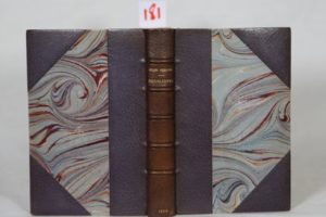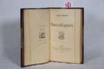RENARD (Jules) – Bucoliques. Paris, Ollendorff 1898, petit in-8° (13 x 19 cm) de 3 ff.- 341pp.- 3 ff.. Édition originale ornée d'une belle couverture en couleurs par Georges Auriol. Un des 20 exemplaires sur Japon réservés pour la société ‘Les XX’ ; exemplaire n° 4 signé par Jules Renard et relié demi-maroquin gris-mauve à coins, dos à nerfs, légèrement passé, tête dorée, date en queue, couvertures et dos conservés, ici en double état. Reliure signée Canape. ‘Les Bucoliques’ introduisent le personnage de ce ‘bougre’ de Philippe, de son vrai nom Simon Chalumeau, serviteur impénétrable et imperturbable de Renard dans sa campagne de Chaumot, dévoué à son service depuis le 1er juillet 1897 jusqu’à sa mort. Lui et sa femme la Rondotte devenue ‘Ragotte’ fourniront à Renard la possibilité d’observer et décrire les mœurs rustiques, la modestie et la naïveté d’un couple rural, ainsi que le rapport entretenu avec leurs maîtres. Les couvertures et le dos conservés sont admirablement illustrés en couleurs par George Auriol, poète chansonnier, journaliste, peintre et graveur qui fut à 22 ans secrétaire de la rédaction du Chat Noir.