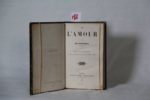 STENDHAL [Henry BEYLE] – De l'amour. Seule édition complète augmentée de préfaces et de fragments inédits. Paris, Michel Lévy fr. 1853, in-12 (12 x 18,2 cm) de xxiii- 371pp., relié demi-chagrin tête de nègre, dos à nerfs orné du chiffre de Francisque SARCEY répété 5 fois. Première édition in-12 en partie originale, tirée des ‘Œuvres complètes de Stendhal’ publiées par Michel et Calmann Lévy. Elle est préférable à celle d’Eugène Didier, parue un peu plus tôt la même année, car elle présente un texte plus correct, selon Clouzot (Guide du bibliophile français du XIXe s.). « Quoiqu’il traite de l’amour, ce petit volume n’est point un roman, dit Stendhal, et surtout n’est pas amusant comme un roman. C’est tout uniment une description exacte et scientifique d’une sorte de folie très-rare en France » (Première préface, page v). Onze ans après la mort de Stendhal, en 1853, son cousin Romain Colomb fait paraître cette nouvelle édition chez Michel Lévy, augmentée de différents fragments inédits. D'après une note (non signée, mais probablement de Colomb) de l'édition Michel-Levy de 1856, la troisième préface pour De l'Amour a été terminée le 15 mars 1842 soit huit jours avant la mort de Stendhal. La note conclut : « C'est donc probablement son dernier écrit ». Réf. : Clouzot 256, Cordier 34-5, Vicaire I-462.