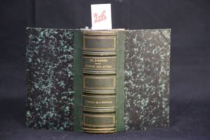 FOURNIER (Édouard) – L'Esprit des autres recueilli et raconté par… Troisième édition revue et considérablement augmentée. Paris, E. Dentu 1857, in-18 de 2ff.- 288 pp., relié avec : FOURNIER (Éd.) – L'Esprit dans l'Histoire. Recherches et Curiosités sur les mots historiques. Paris, E. Dentu 1857, in-18 de 2ff.- 284 pp. (importante table), première édition, relié avec : DUPUIS (Jules) – Juvénal à Paris, sa vie et ses maximes. Paris, E. Dentu 1857, in-18 de vi-85 pp.. Ensemble en un fort volume in-18 (12 x 16 cm.) relié demi-chagrin vert bronze, dos à nerfs orné de filets or formant caissons. Réf. : Vicaire III-780, la première édition de l’Esprit des autres offrait 144 pp., la 3e : le double !