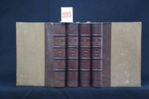 PLUTARQUE – Vies des Hommes Illustres. Traduction nouvelle par Alexis Pierron. Édition entièrement revue et corrigée. Paris, Charpentier 1858, 4 vols. in-12 (18,4 x 12 cm) formant plus de 2.550 pp., en reliures d’époque demi-chagrin brun, dos à nerfs surlignés de filets à froid, gardes marbrées, tranches peintes en jaune. Volumes sans défaut. Cette traduction du savant helléniste demeure pérenne puisqu’elle a été reprise par Françoise Frazier pour les Éditions Flammarion jusque dans les années 2000.