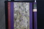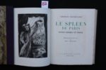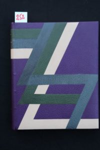 BAUDELAIRE (Charles) – Le Spleen de Paris. Petits poèmes en prose. Illustrations gravées sur cuivre de Paul HANNAUX. Paris, Aux dépens d'un Amateur 1950, grand in-4° (28 x 34 cm) de 178 pp.- 3ff. illustré par 16 gravures hors-texte en taille douce de Paul Hannaux. Tirage limité à 275 ex., celui-ci sur vélin de Lana (n° 244) sorti des presses de ‘La Ruche’. Reliure plein maroquin violet avec un décor géométrique de bandes de maroquin crème, vert et bleu recouvrant l’ensemble du volume sans discontinuer, chemise à bandes et rabats du même maroquin (dos insolé), étui bordé sur le tout, tête dorée, couvertures et dos conservés. Reliure signée ‘Eug. de Fages’. Bel exemplaire. Réf. : Monod I-1173.