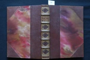 BÉDIER (Joseph) – Le roman de TRISTAN et ISEUT, renouvelé par Joseph Bédier. Ouvrage couronné par l'Académie Française. Illustrations de Robert ENGELS. Paris, L'Édition d'Art H. Piazza, s.d. [20 mars 1914], vol. pet. in-4° carré (19 x 24,5 cm) de 199 pp.- 1f. avec 48 illustrations en couleurs dans le texte. Reliure de l’époque demi-maroquin havane à coins, dos à nerfs surlignés de filets or en pointillé, caissons de filets or et n-rinceaux avec un large fleuron à froid au centre de chacun, tête dorée, couvertures et dos conservés. Très bel état. Issue de la tradition orale de Bretagne, la légende de Tristan et Iseut fait son entrée dans la littérature écrite au XIIe siècle. Entre 1900 et 1905, Joseph Bédier a constitué une version complète à partir de Béroul, Thomas d'Angleterre, Eilhart von Oberge et de fragments anonymes. Son ouvrage est devenu alors la version de référence pour les lecteurs du XXe siècle. Belles illustrations Art Nouveau de Robert Engels.