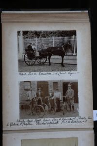 [PHOTOGRAPHIES] – Familles nobles de BELGIQUE. Album in-4° à l’italienne (33 x 26,5 cm) de 30 ff. contenant 120 photographies la plupart en tirage albuminé, dans les formats 9x12 9x9, 11,5x16 10x15, et 23x17 cm. Prises dans les années 1897-1900 : vues du château d’Olsene et de personnes dans l’entourage de la famille Piers de Raveschoot, dont plusieurs membres furent Bourgmestres d’Olsene, Zulte en Flandre orientale. La plupart des photographies sont légendées : on relève les noms de Ghellinck d'Elseghem Vaernewyck, Vergauwe, Smith-Pigott. Bonne qualité d’exposition et de tirage.
