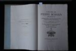 [BOSSAN (Pierre)] - THIOLLIER (Félix) – L'Œuvre de Pierre Bossan, Architecte. Basiliques, Églises, Chapelles, Monuments civils, Tombeaux, Bronzes, Orfèvrerie, etc. Monographie de la Chapelle de Saint-Thomas d'Aquin à Oullins (Rhône). Peintures, sculptures, décoration intérieure par P. Borel, C. Dufrayne, J. Razuret. Ouvrage contenant 450 motifs d'architecture reproduits en héliogravure. Publié par les soins de Félix Thiollier. Montbrison, Brassart 1891, in folio en feuilles, sous portefeuille demi-percaline marron de l'éditeur, 23 pages de texte et 120 héliogravures hors-texte (dont le frontispice et deux ‘bis’) ; figures dans le texte ; la première et la dernière page brunies, comme toujours ; infimes rousseurs marginales. Pierre Bossan (1814-1888) est entre-autres l’architecte la basilique Notre-Dame de Fourvière et de la basilique Saint-Régis à Lalouvesc.