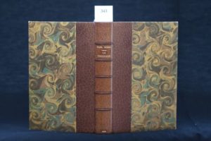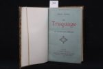 EUDEL (Paul) – Le Trucage. Les contrefaçons dévoilées. Deuxième édition. Paris, E. Dentu 1884, in-18 (12,5 x 18,5 cm) de 3ff.- 432 pp. relié demi-maroquin havane clair, dos à nerfs fins, date en queue, tête dorée, couverture bleu ciel gaufrée imprimée en noir et rouge conservée. Exemplaire parfait dans une fine reliure signée de ‘Lobstein-Laurenchet’. Révélations sur les contrefaçons et les faussaires de tous les temps et dans tous les domaines.
