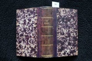 LANOYE (Ferdinand de) – Le Niger et les explorations de l’Afrique Centrale depuis Mungo-Park jusqu'au Docteur Barth. Paris, Hachette 1858, fort in-12 (12,5 x 18 cm) de 2ff.- 620 pp. et 1 grande carte dépliante. Reliure d’époque demi-basane aubergine, dos lisse, orné de six rangs de doubles filets or en place de nerfs, rousseurs. Première édition. Réf. : Gay 2778. « Le Niger et les explorations de l'Afrique centrale depuis Mungo-Park jusqu'au docteur Barth, est le récit des efforts et des sacrifices qui ont permis la reconnaissance du fleuve. Les explorations sont présentées dans l'ordre chronologique résumant les récits de voyages, des extraits de ces récits et des parties où l'auteur met en scène son point de vue, offrant une image du Soudan Central riche et précise, de la diversité des systèmes politiques, des langues et des échanges culturels… Le ton est celui de l'aventure, le récit est séduisant et néanmoins scientifique… » (C. Lefebvre, Frontières de sable Frontières de papier, 2015).
