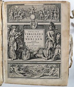 (Auteur de l'Antiquité) - VERGILIUS, Maro Publius.- Publius Vergilius Maroos Wercken [...]. Amsterdam, Abraham de Wees, 1660. In-4° : [28 incl. gegrav. titel]-565-[3] pp. (binding van eerste katern hersteld, enkele onderlijningen met pen, bleke...