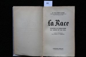 DARRÉ (Walther) – La Race. Nouvelle Noblesse du sang et du sol. Paris, Fernand Sorlot 1939, …
