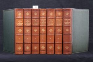 THUREAU-DANGIN (Paul) – Histoire de la Monarchie de Juillet. Paris, Plon-Nourrit 1909-1904. 7 vols. in-8° (16 x 23,5 cm) reliés demi-chagrin tabac, dos à nerfs orné de caissons avec filets à froid et fleuron au centre, plats de toile granité verte. Bons ex. L’académicien Paul Thureau-Dangin obtint par deux fois le prix Gobert pour son Histoire de la Monarchie de Juillet.